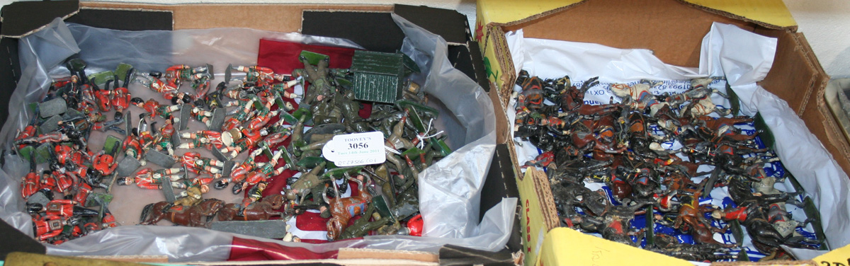 A collection of Britains and other lead soldiers, including First World War and cavalry (playwear, paint chips and faults).