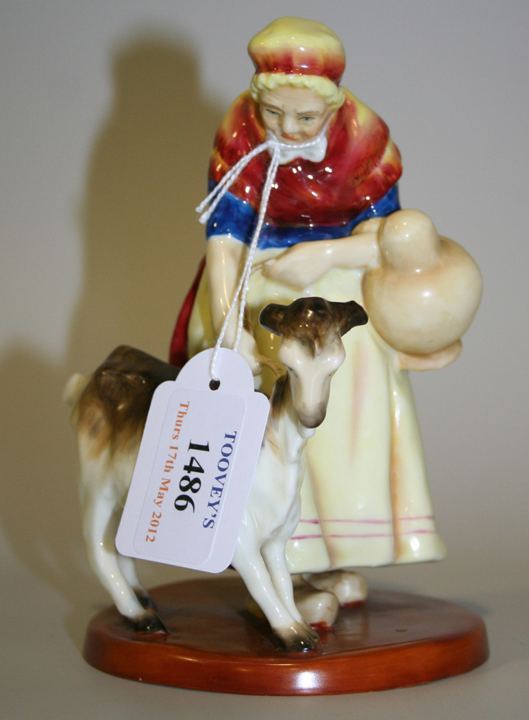 A Royal Worcester figure 'Old Goat Woman', circa 1955, modelled by Phoebe Stabler, RW2886, black printed factory marks to base, height approx 14.5cm, (minor nick to base edge).