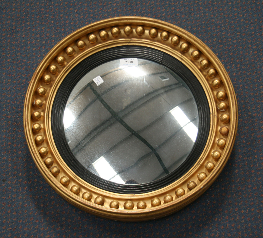 A 19th Century circular convex wall mirror, the moulded gilt frame with ballshot decoration, diameter approx 46cm.