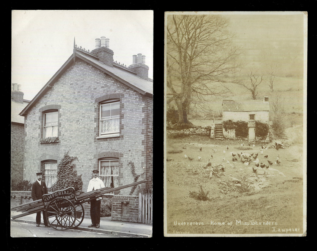 A collection of 18 photographic postcards of social history interest, including postcards of Imperial Window Cleaning Co. Surrey, a fire engine, a William Dickenson canal carrier and postcards titled 'Undergrove, Home of Miss Saunders, Lampeter', 'German Prisoners in Detention Compound at Frith Hill' and 'The Visitors to see the launching of H.M.S. Bellerophon'.