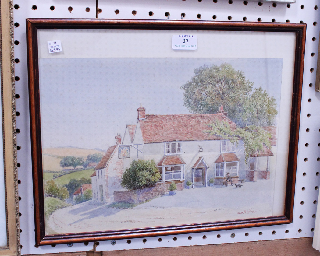 Leeson Rowbotham - Man sitting outside a Village Pub, watercolour, signed, approx 27cm x 37cm.