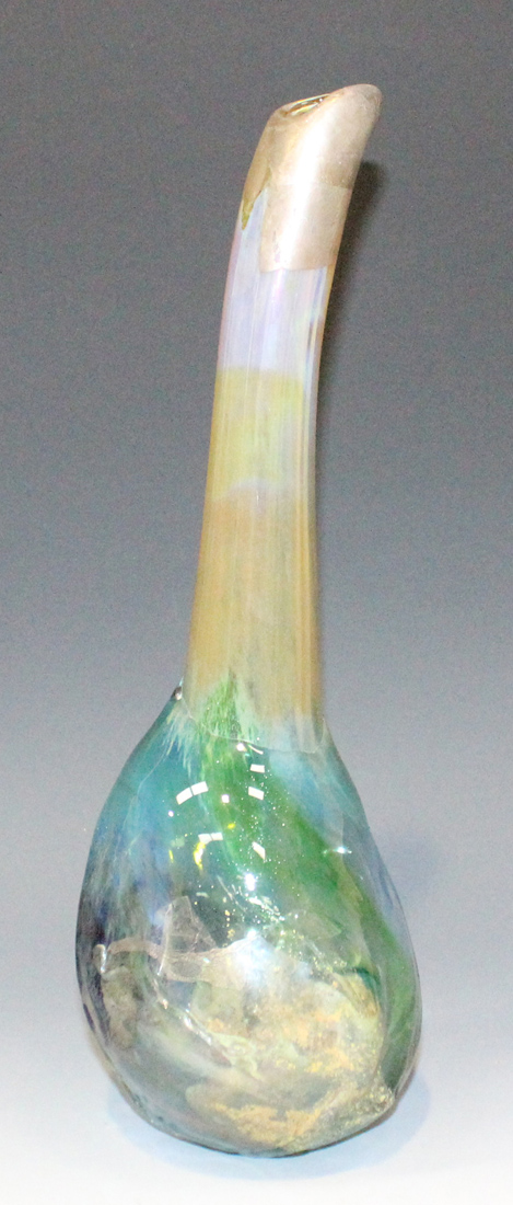 A Martin Evans Isle of Wight studio glass specimen vase of abstract club form, engraved 'Martin Evans IW 06' to base, height approx 38cm.
