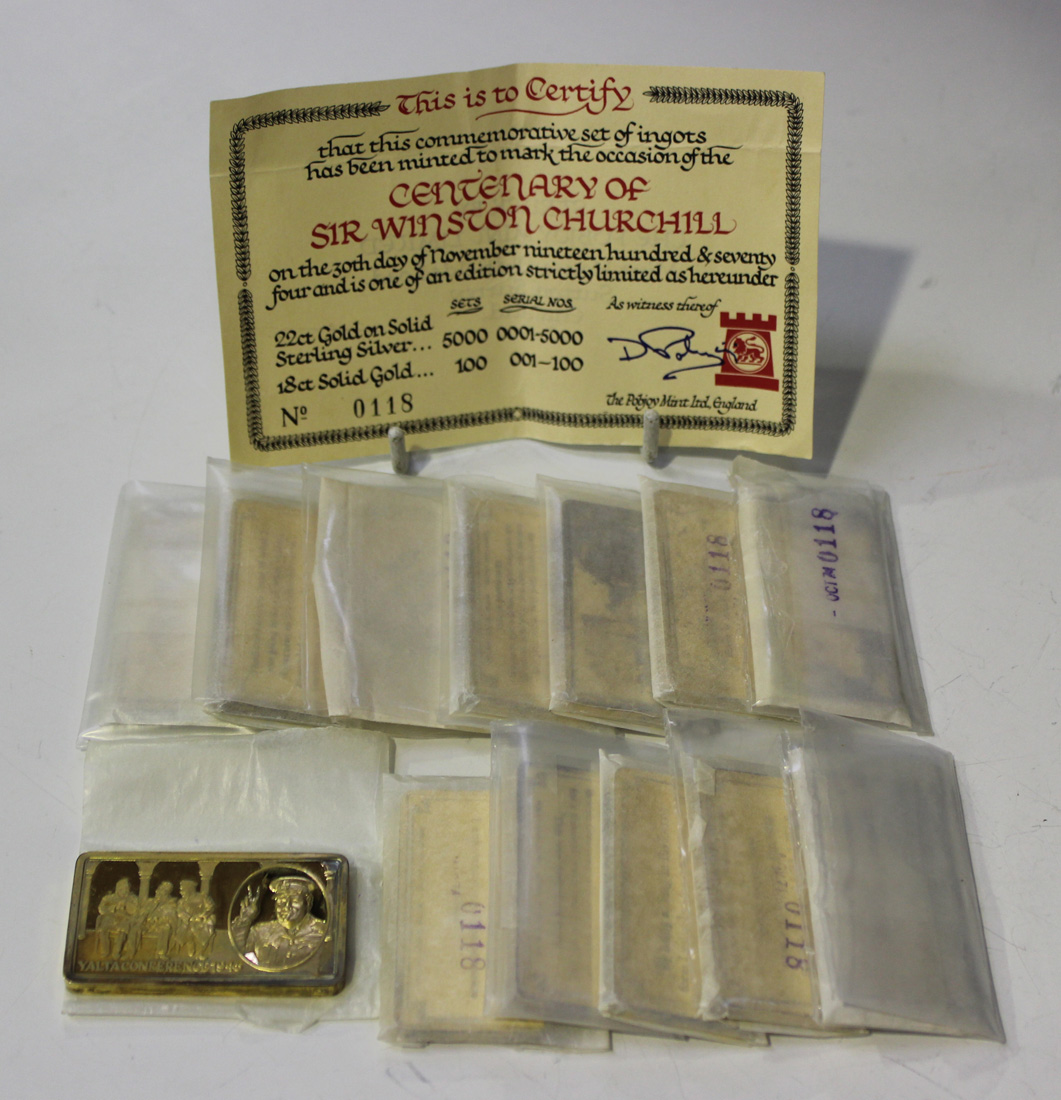 A set of thirteen silver gilt Centenary of Sir Winston Churchill commemorative ingots, with certificate.