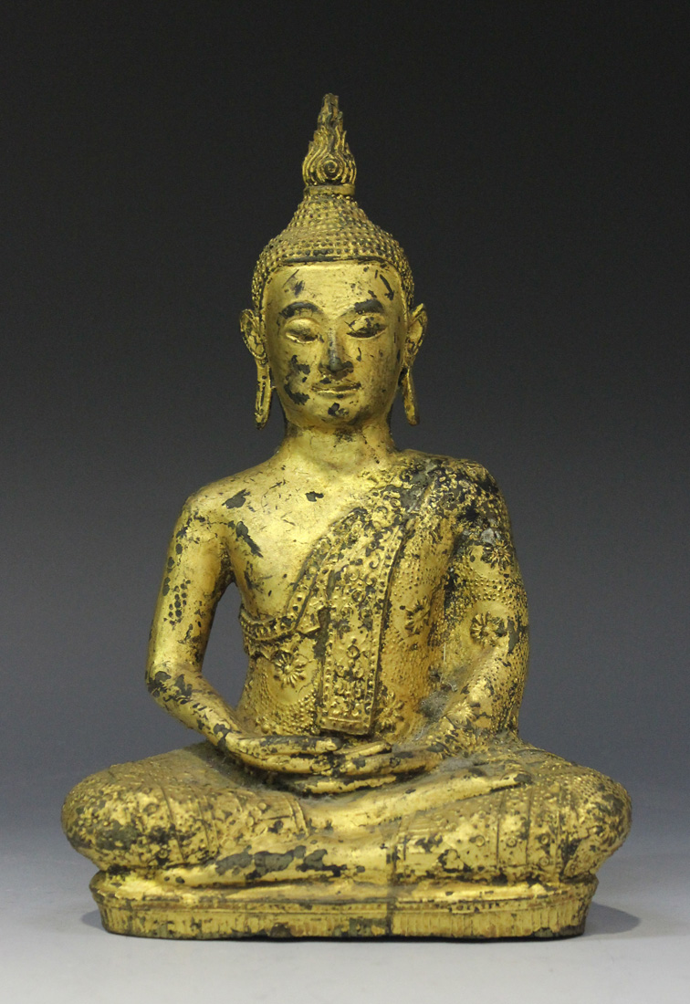 A Burmese gilded bronze figure of Buddha, modelled seated in dhyanasana, height approx 24cm.