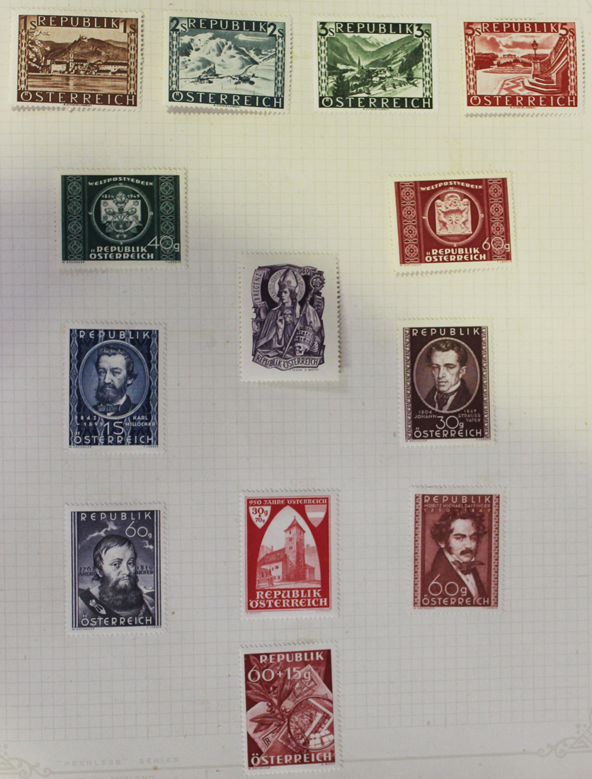 An album and stock book containing World stamps, including Austria and Germany 1940s to 1950s, mint and some loose in a tin.