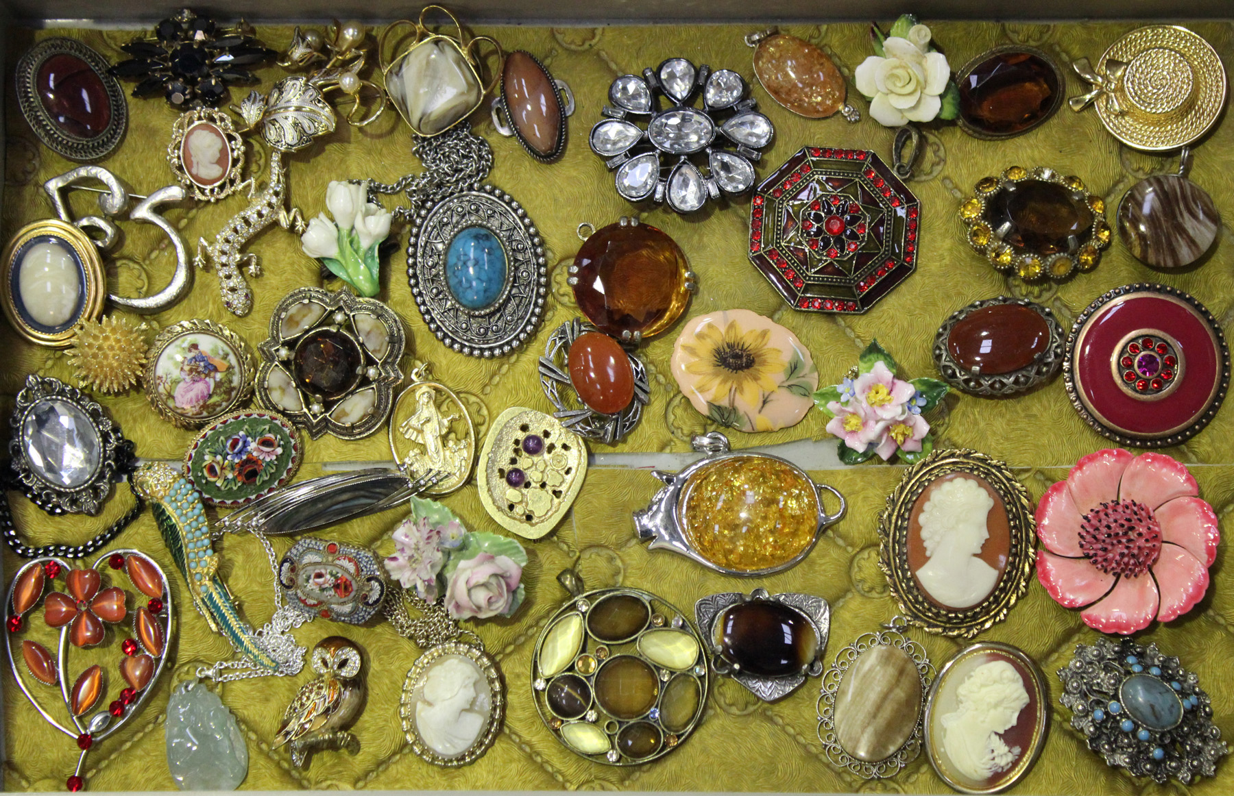 A collection of costume jewellery, including brooches, necklaces, earrings and sundry.