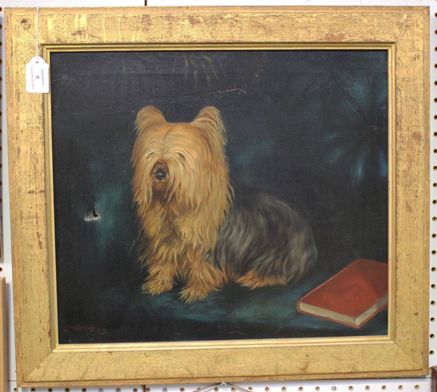 A. Garnham - Portrait of a Yorkshire Terrier, oil on canvas, signed and dated 1893, 41.5cm x 48cm, within a gilt frame.