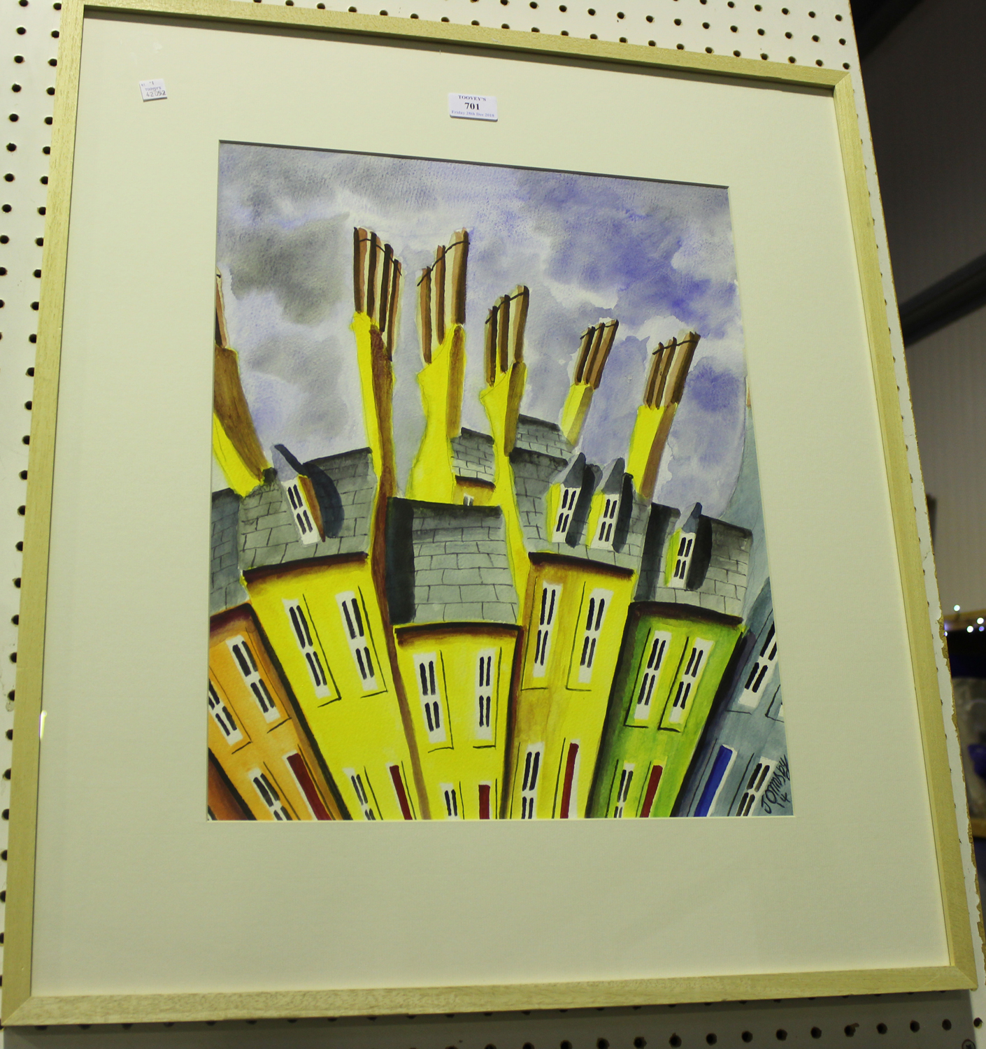 John Ormsby - Terraced Houses, watercolour, signed and dated '14, 49cm x 39.5cm, within a softwood frame.