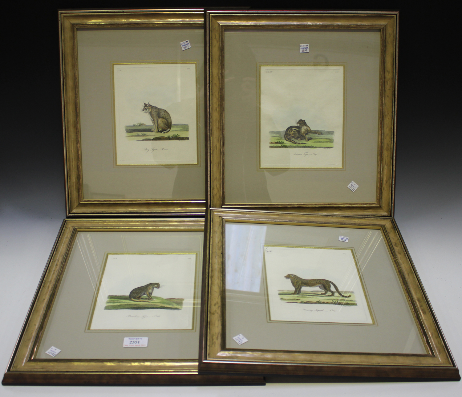 A set of four 19th century hand-coloured engravings of wild cats, including Brazilian Tiger and Bay Lynx, 20.5cm x 16.5cm, mounted within giltwood frames.