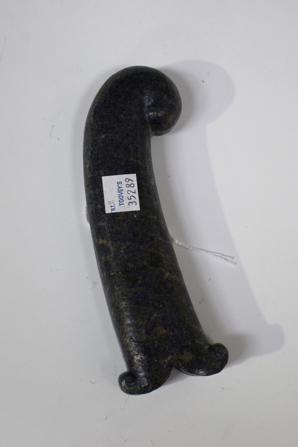 A Mughal style blue hardstone dagger/sword handle, modern, probably lapis lazuli, length 16cm.