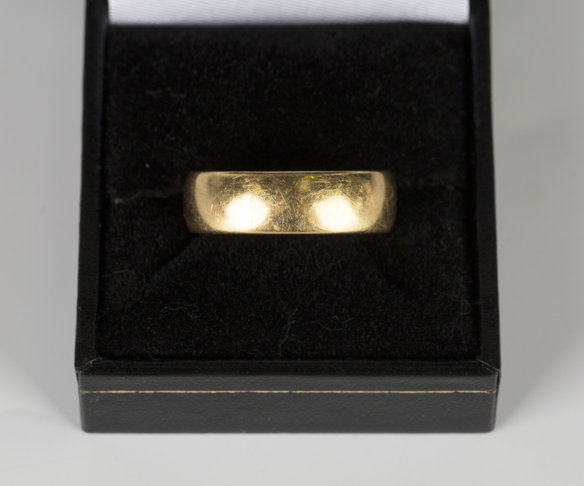 An 18ct gold plain wedding band ring, Chester 1912, ring size approx W.