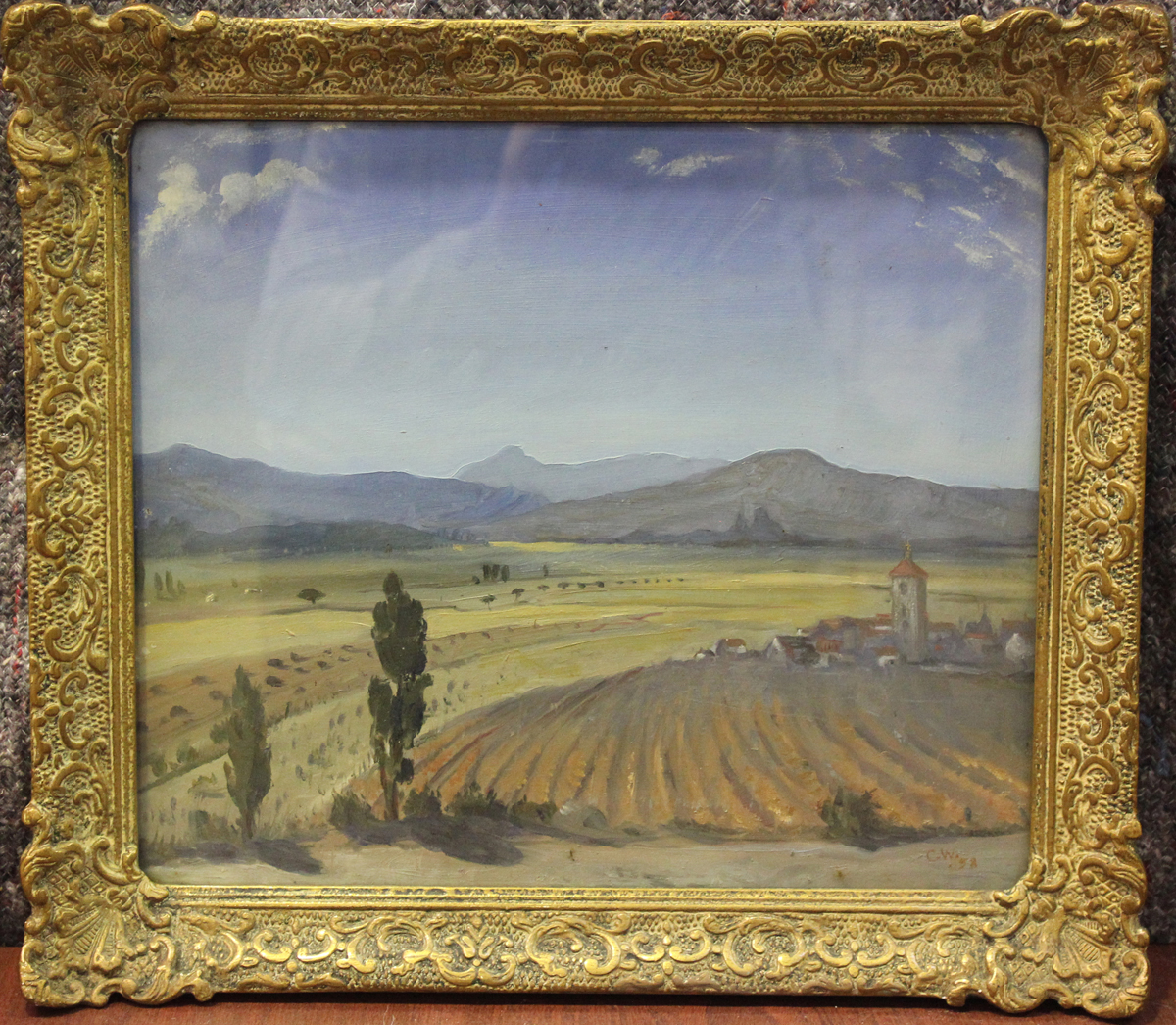 Charles Thomas Wheeler - Continental Landscape, probably Spain, oil on board, signed with initials and dated '58, 29.5cm x 34.5cm, within a gilt composition frame.