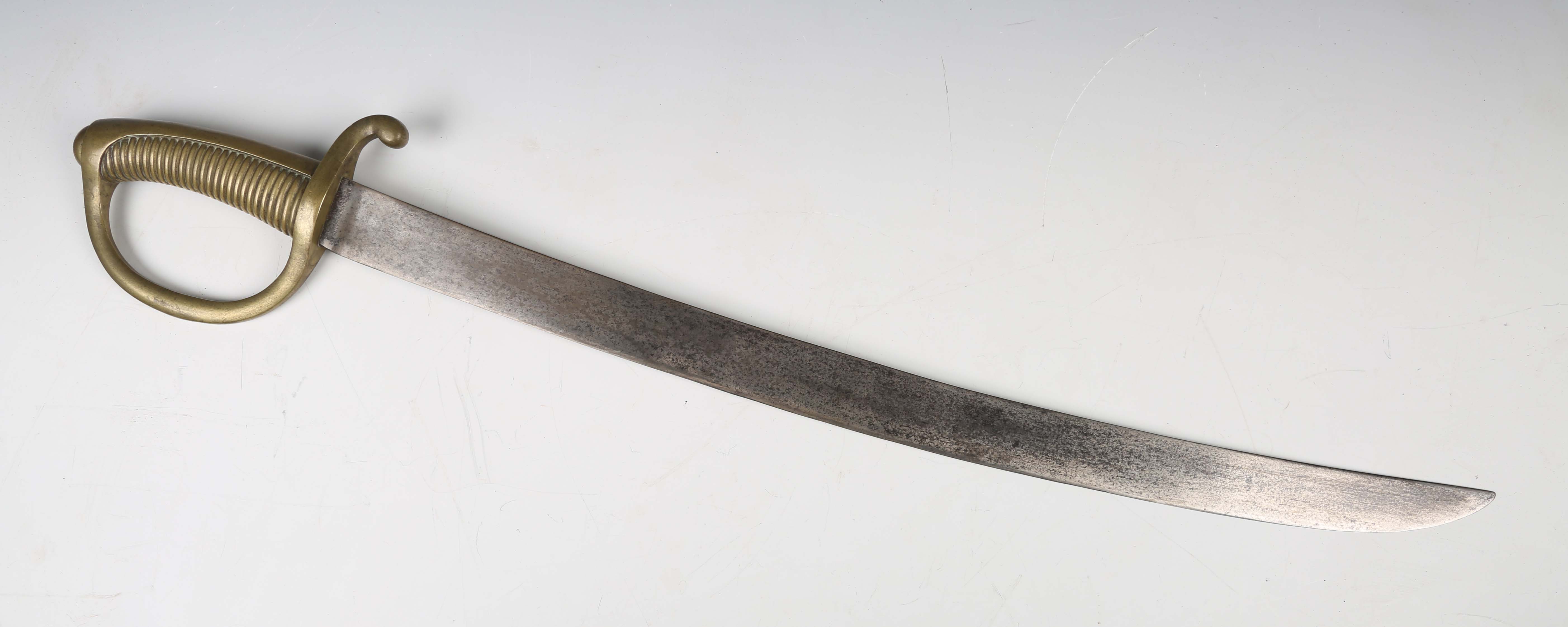 A 19th century French M1816 briquet sabre with curved single-edged blade, blade length 58.5cm, the ricasso marked 'Berncastellaine & Cie', and moulded brass grip.