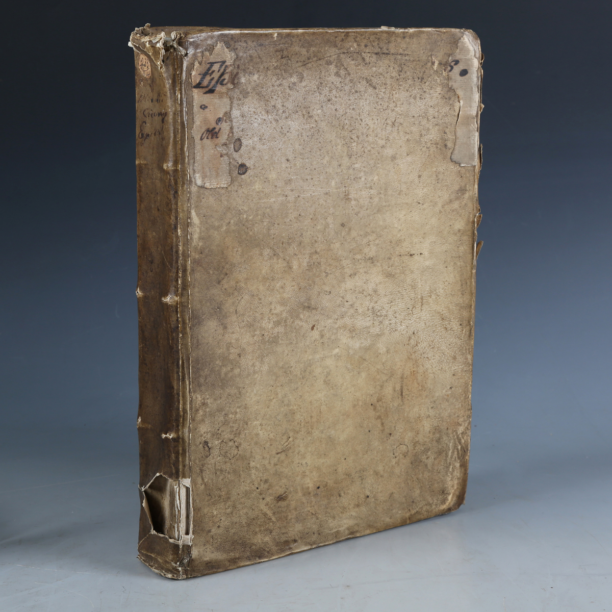CICERO, Marcus Tullius. Familiarium Epistollarum Libri XVI. Venice: 1552. 8vo (296 x 203mm.) Woodcut printer’s device to title, woodcut initials and headpieces, mostly triple-column text. (Title has part of the woodcut device excised to remove the nude figure, title and *ii loosened, marginal spotting and damp-staining until leaf E, last leaf li iiii2 [p.253] and lacking all after, 2 rear blanks replaced.) Contemporary vellum (dust-soiled, rubbed, lacking small area of spine panel). Provenance: ‘Monasterii Sanctae Mariae Novae Montis Regalis’ (name-plate verso title).