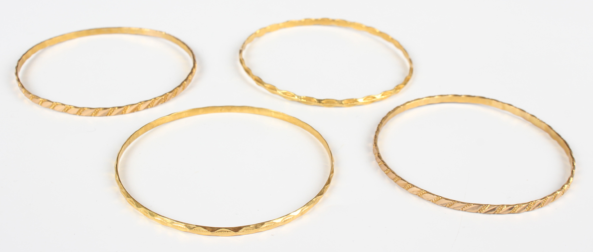 Two pairs of gold bangles, probably Middle Eastern, total weight 30.4g, inside diameters of each pair 6.1cm and 6.4cm.