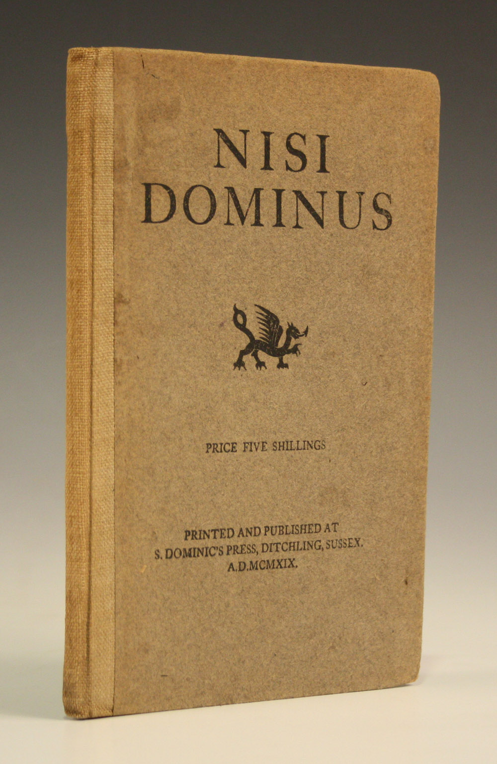 GILL, Eric (illustrator). - Hilary Douglas Clark PEPLER. Nisi Dominus. Ditchling: S. Dominic's Press, 1919. 8vo (184 x 120mm.) Numerous illustrations by Gill. (Minor soiling.) Original cloth-backed boards (slightly discoloured).