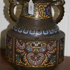 A Chinese Archaistic bronze and cloisonné vase, late 19th Century, the body decorated with enamel panels beneath a pair of mask and tongue handles, height approx 35.5cm.