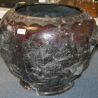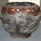 A Japanese bronze jardinière, Meiji period, cast with birds and branches (lacking base and faults).