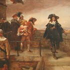 Robert Hillingford - King Charles I on the Walls of Chester, 19th Century oil on canvas, signed recto, remnants of label verso, approx 49.5cm x 75cm, within a gilt composition frame with elaborate floral mouldings.