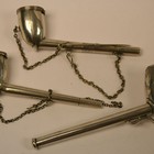 A Continental silver pipe case, the hinged bowl engraved with flowers and scrolling foliage, applied 'Barton Collection' paper label, together with two other silver pipe holders, each with hinged bowl and pierced cover.