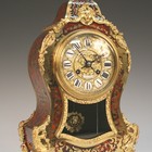 A late 19th Century French ormolu mounted boulle cased mantel clock with eight day movement striking the hours and half hours on a bell, the dial inset with white enamel hour plaques with black Roman numerals and inscribed 'Paul Thimig, Dresden', the movement stamped 'B & G' and numbered '2552', the balloon case with flower cluster finial above applied mask and scroll decoration framing a glazed lenticle, on foliate scroll moulded feet, height approx 36cm, together with sunburst pendulum and key.