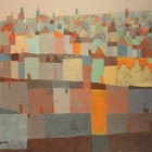 Emma Brownjohn - 'Houses on the Hill', oil on canvas, signed and titled verso, approx 70cm x 100cm, unframed.