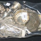 A George V silver pin dish of shaped circular form, Sheffield 1923, a silver small footed bowl, London 1913, and a small group of plated items.