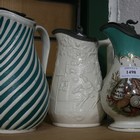 A Pratt Ware jug with pewter tappit lid, 19th Century, the body transfer printed with an arrangement of sea shells, together with two further Victorian jugs.