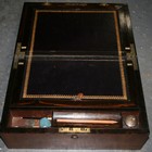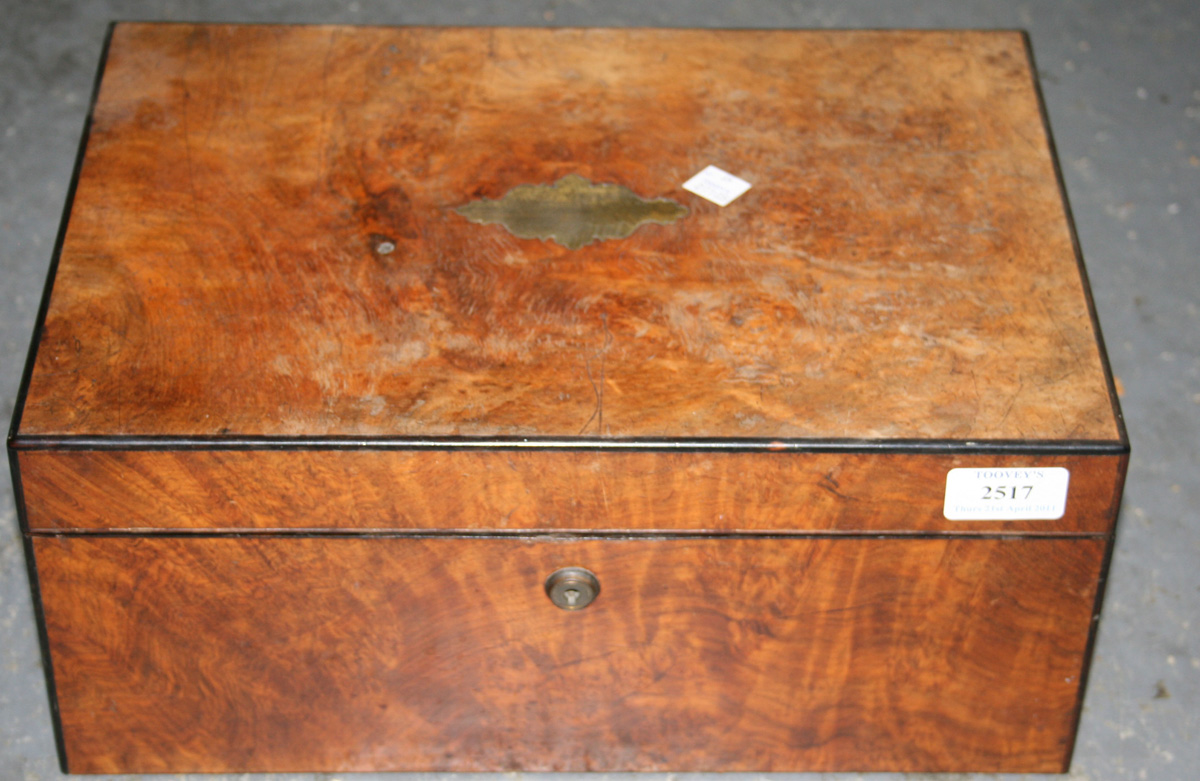 A Victorian burr walnut writing slope, the interior bearing manufacturer's label 'Parkins & Gotto, London', together with a rosewood box.