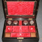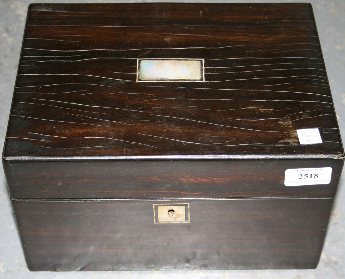 A Victorian ebony vanity box, the hinged lid revealing a fitted interior, together with a lacquer box.