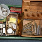 A large collection of pocket watch movements and various watchmaker's tools and accessories.