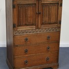 A mid-20th Century oak tallboy fitted with a pair of cupboard doors above three drawers, together with a similar dressing table.