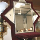A late Victorian wall mirror, the sectional star-shaped plate with etched borders, within a burgundy velvet surround, height approx 56cm.