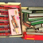 A Hornby Dublo two rail No. 2400 T.P.O. mail van set, boxed, seven coaches, finished in maroon livery, all boxed, two Southern coaches, a No. 2233 Met-Vic Co-Bo diesel locomotive, a Golden Fleece locomotive, other rolling stock, buildings and accessories (playwear, boxes faded, creased and scuffed).
