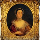 Late 18th Century British School - Oval Half Length Portrait of a Lady wearing a Lace Bonnet, Brown Dress with Lace Collar and Pearls, oil on canvas, label verso, approx 73cm x 60cm, within a gilt composition frame.