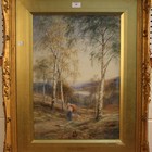 John MacWhirter - 'Autumn in Strathglass' (Woodland View with a Young Girl collecting Twigs), late 19th/early 20th Century watercolour, signed, approx 55cm x 38cm, within a titled mount and gilt composition frame.