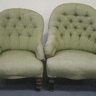 A Victorian tub back nursing chair on ring turned legs, together with another similar chair.