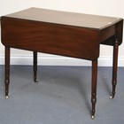 A late Victorian mahogany Pembroke table fitted with a single frieze drawer, on turned legs and castors.