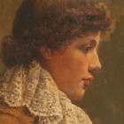 Mary MacArthur - Head and Shoulders Portrait of a Youth in profile wearing a Large Lace Collar and Brown Jacket, late 19th Century oil on canvas, signed, approx 18.5cm x 13cm, within a wide gilt slip and composition frame.