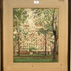 E.M. Garner - Architectural Study of Buildings in Park Lane, London, early 20th Century pencil and watercolour, signed, approx 42.5cm x 35cm, within an oak frame.