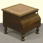 A mid-Victorian figured mahogany step commode inset with gilt-tooled leather, on turned legs.