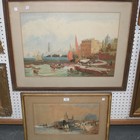 Frost - View of a Continental Coastal Town, late 19th Century watercolour, pencil and coloured chalks, signed, within a gilt frame, together with two further watercolours.