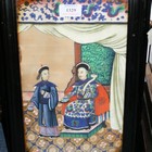 A group of five Chinese Canton export paintings on rice paper, mid-19th Century, depicting warriors, dignitaries and their attendants, a procession and birds, various sizes, framed and glazed.