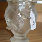 A Lalique frosted glass vase, modern, the wrythen moulded oval shaped body raised on a circular foot, applied with two doves, original applied paper label and engraved 'Lalique France' to base, height approx 12.5cm.