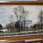 Jeremy King - 'Remenham Farm' (Henley Landscape with Figures and Boats), 20th Century oil on canvas laid on board, signed and dated '74 recto, titled label verso, approx 121cm x 60cm, within a gilt frame.