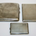 A George V silver cigarette case with engine turned decoration, Chester 1929, together with another silver cigarette case and a silver match book case.