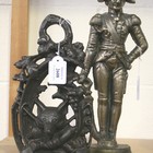 A cast iron doorstop in the form of the Duke of Wellington, together with another doorstop in the form of a fox's head above boots within a surround of flowers.