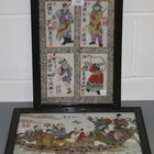 A Chinese porcelain rectangular panel, late 20th Century, decorated with figures in a pleasure boat, together with a similar figural panel, both within ebonized frames.