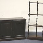 A late 20th Century stained hardwood side cabinet, fitted with two panelled doors, together with a four tier corner whatnot.