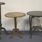 An Edwardian mahogany two tier occasional table, a 20th Century oak and beech circular table and a jardinière stand.